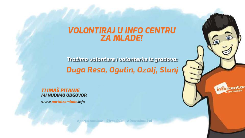 Potrebni su nam volonteri i volonterke iz Karlovačke županije, točnije iz gradova: Duga Resa, Ogulin, Ozalj i Slunj.