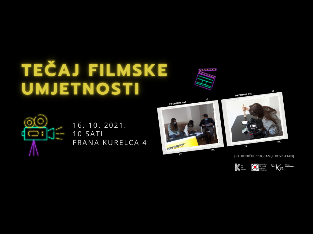 Kinoklub Karlovac i ove godine organizira besplatan Tečaj filmske umjetnosti za filmske početnike namijenjen svim zainteresiranim osobama željnim filmskog znanja. Radionice će se održavati u prostoru Kinokluba Karlovac, Frana Kurelca 4. Prvi sastanak s polaznicima bit će održan 16. listopada 2021. u 10:00.