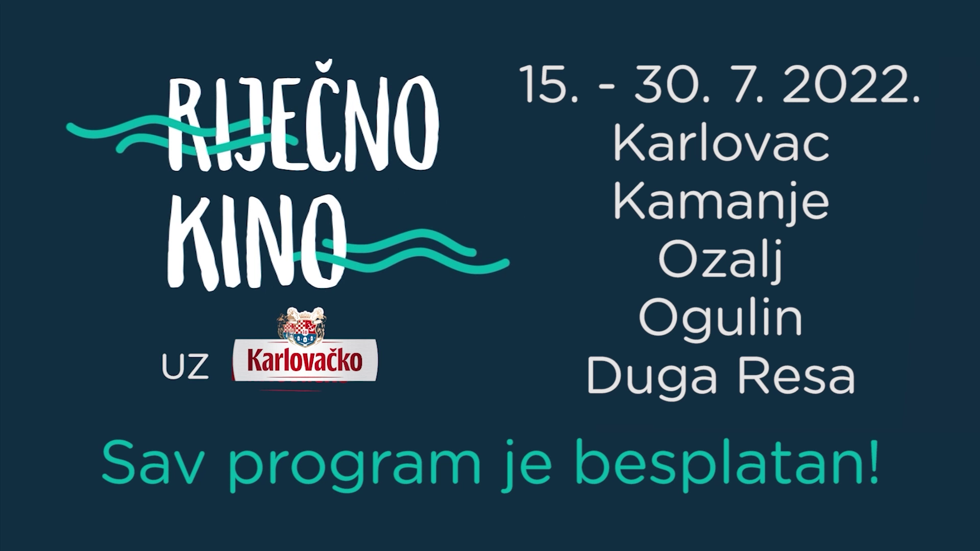 „Posljednjih dana s ponosom čitamo vijesti kako je Karlovačka županija, po brojnim pokazateljima, uz sam bok Gradu Zagrebu što se tiče atraktivnosti domadim i stranim turistima. Izrazito mi je drago što je upravo naše Karlovačko dio brojnih manifestacija koje se događaju u gradu te što zajedno radimo na bogatim programima koji se redovito nalaze na listama svih onih željnih dobre zabave i kvalitetnih i raznolikih programa. Riječno kino uz Karlovačko podržavamo dvanaesti put i s velikim zadovoljstvom pozivamo sve filmoljupce da nam se pridruže na još jednom izdanju, opuste uz vrhunski program i među svojima odgovorno uživaju u našem pivu“, poručila je Ljudmila Bratko Gašpid, menadžerica korporativnih poslova HEINEKENA Hrvatska, čiji je brend Karlovačko generalni pokrovitelj ove manifestacije.